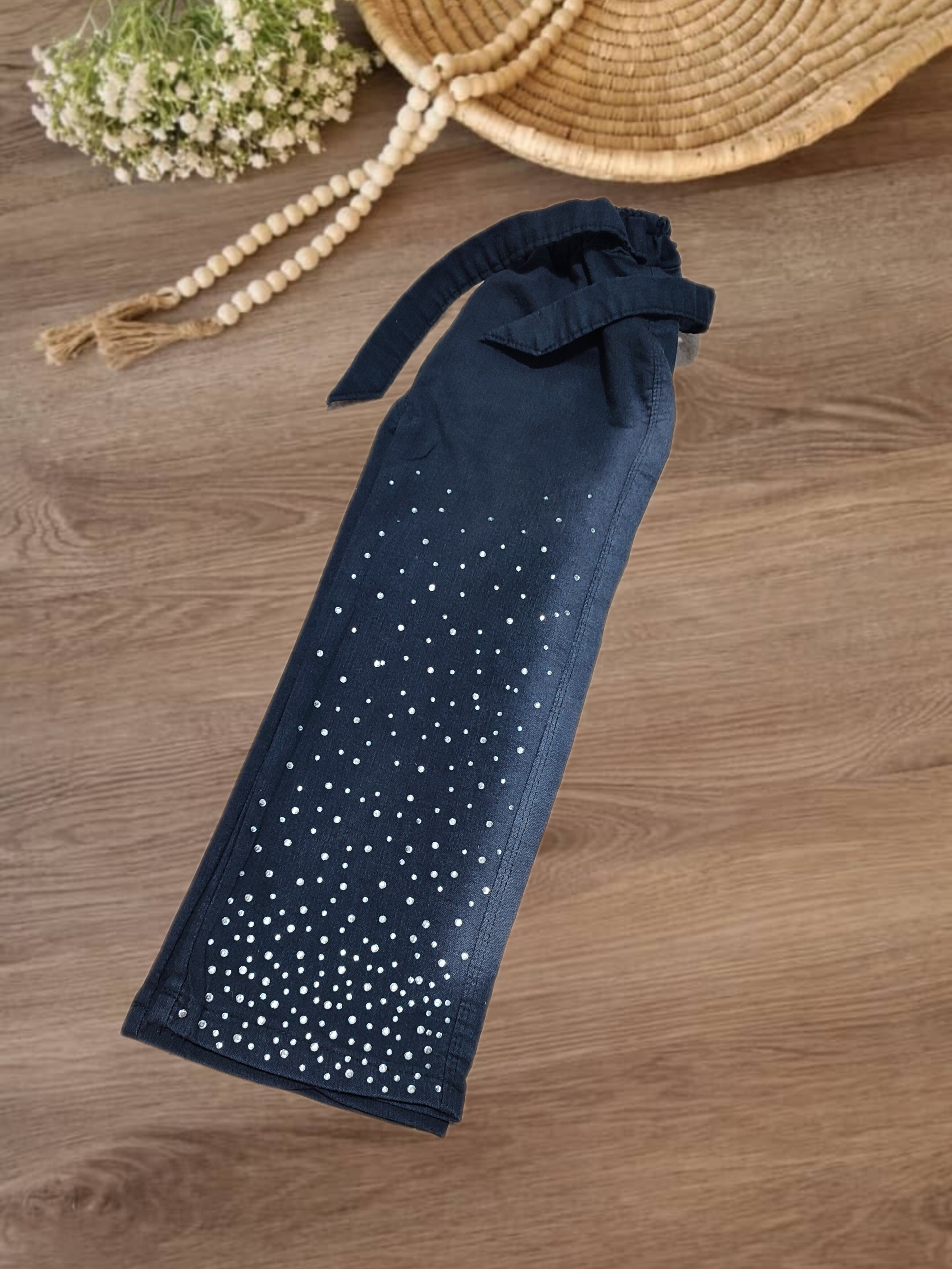 شلوار لی بگ نگین دار دخترانه