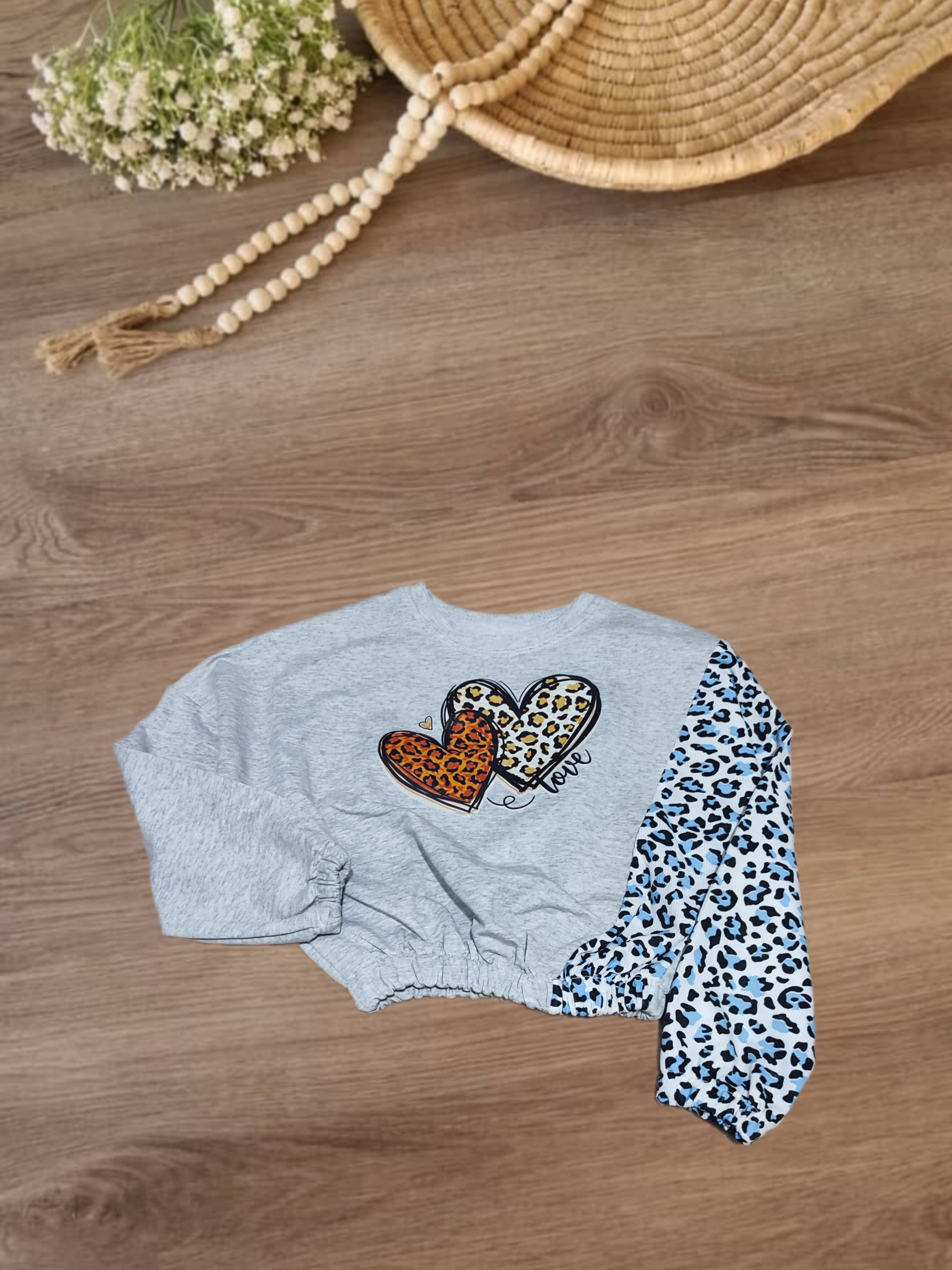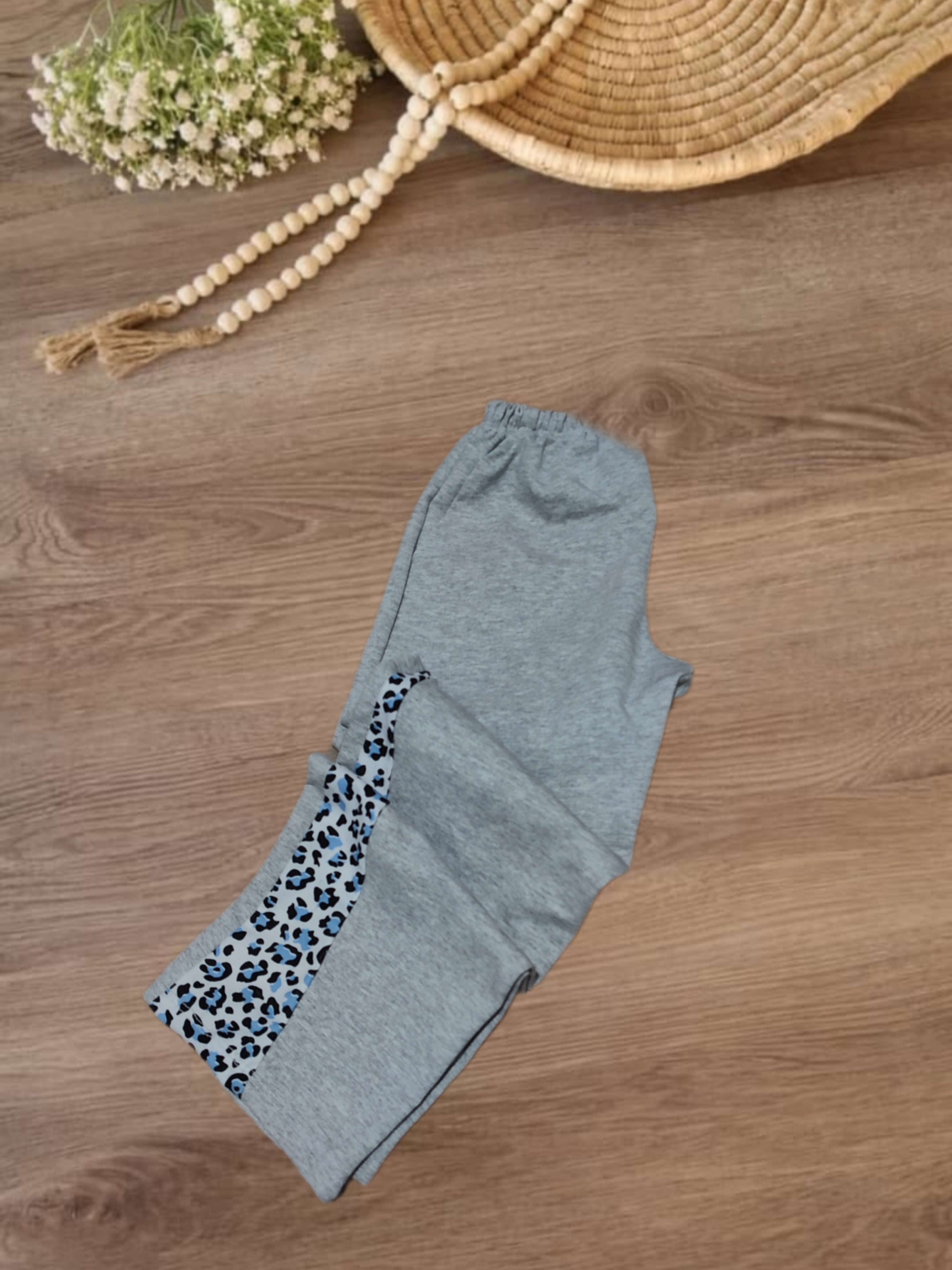 کراپ شلوار دخترانه طوسی طرحدار